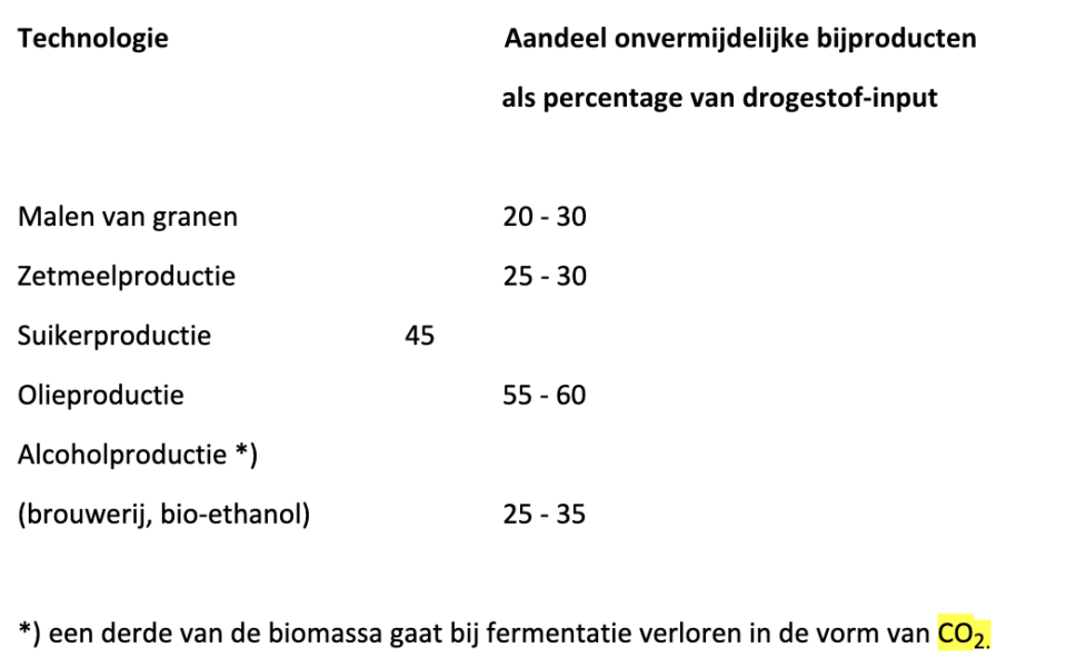 de Onvermijdelijke bij voedselproductie. Tabel reststromen 1.