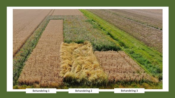 Op veld 1 is gebruikgemaakt van een moderne tarwevariëteit zonder kunstmest en gewasbescherming. Op veld 2 is gebruikgemaakt van een oude tarwevariëteit met kunstmest en gewasbescherming. Op veld 3 staat een moderne tarwevariëteit met kunstmest en gewasbescherming.
