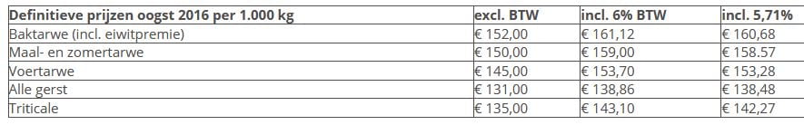 De prijzen zijn inclusief eiwittoeslag voor baktarwe, met een HL-gewicht van minimaal 76 kg/hl en een eiwitpercentage vanaf 12,5%.